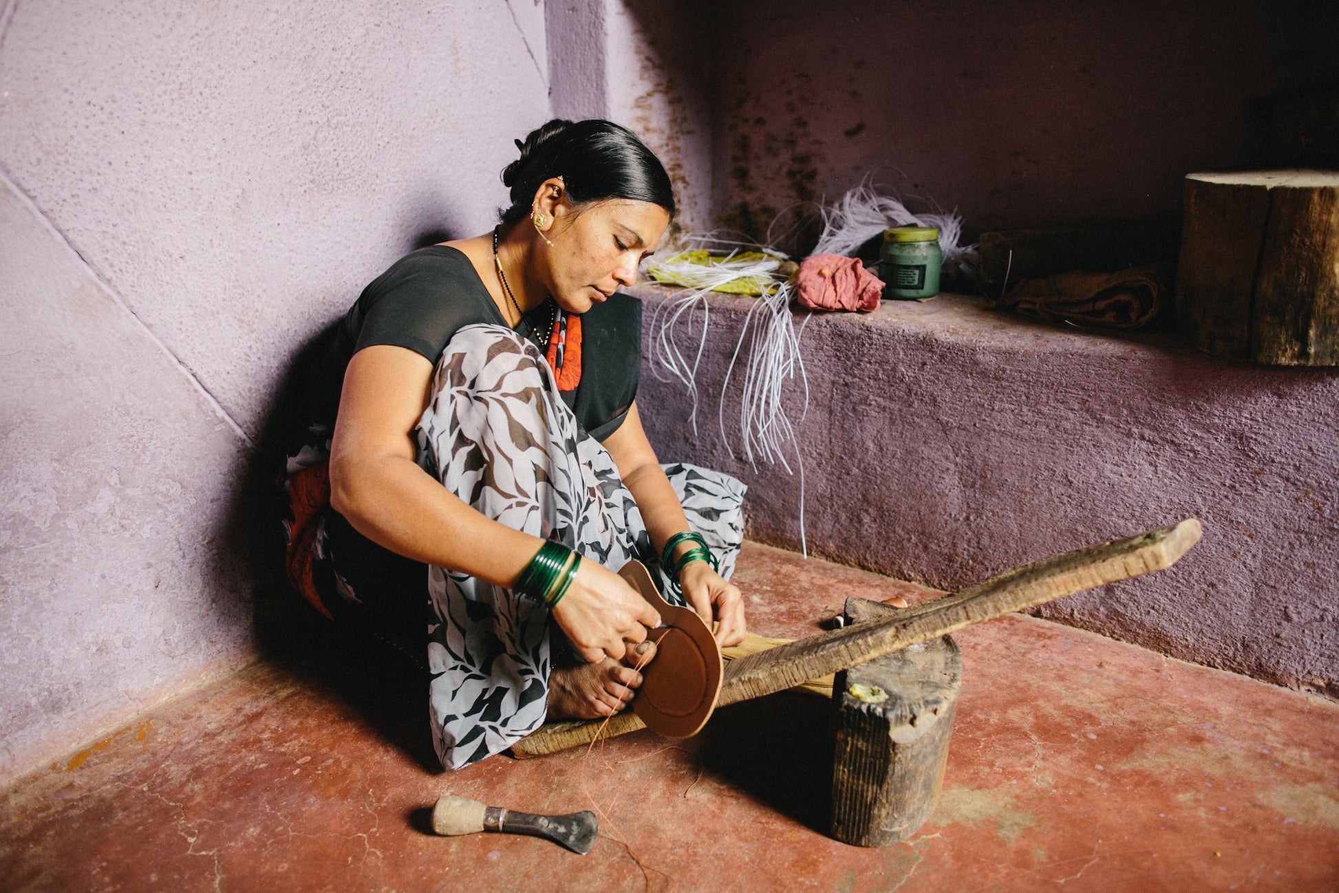 pass a shoe in progress along in a workshop until it is fully completed. Since 2012, we have been partnering with the same cooperative of shoemakers in Athani to create the distinctive styles of Mohinders.