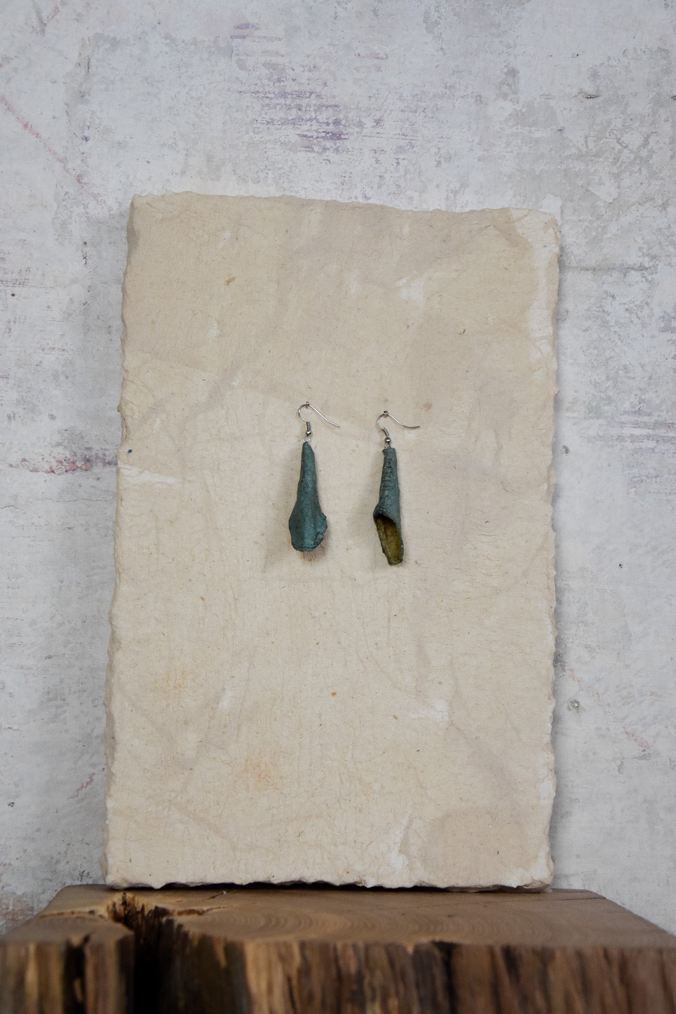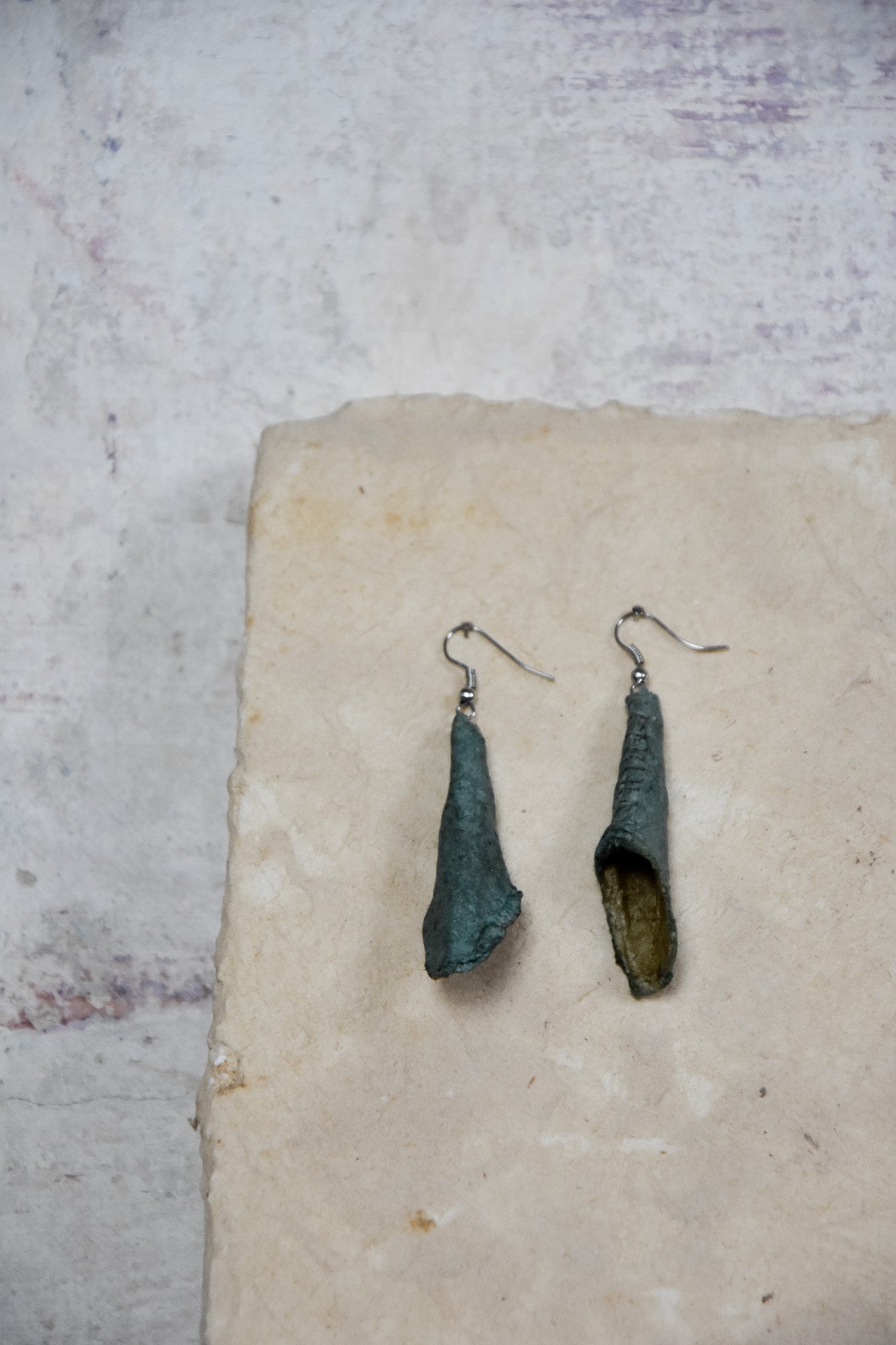 Stien maakt kunstwerken, sieraden, stationaire boeken en verlichting. Elk stuk is uniek.Ze omarmt de vergankelijkheid van de natuur in haar collectie, die vol zit met sporen, structuren en verwijzingen naar fragiliteit.