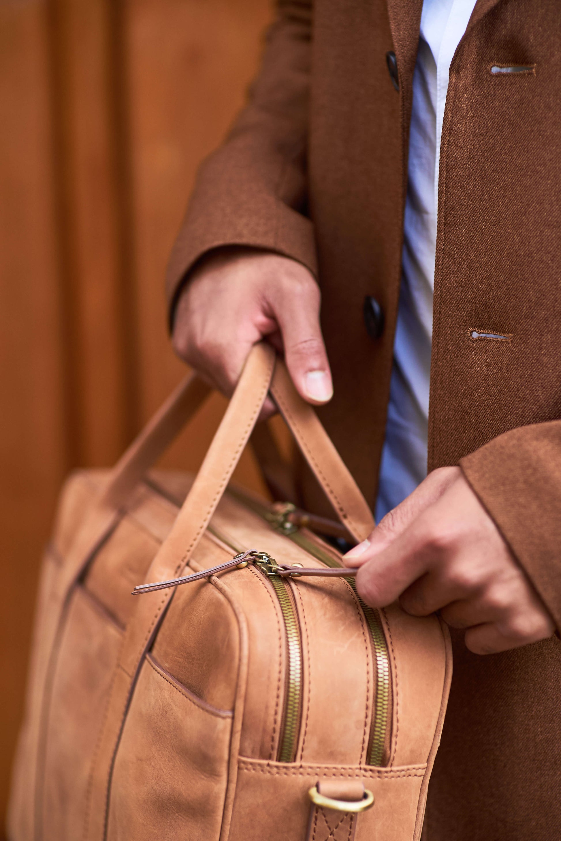 Het oorspronkelijke klassieke leder komt uit Kolkata, India, en de tweede is een Vachetta-leer uit Toscane, Italië. Beide natuurlijke leersoorten worden gekenmerkt door een satijnglans en een glad, zacht gevoel.