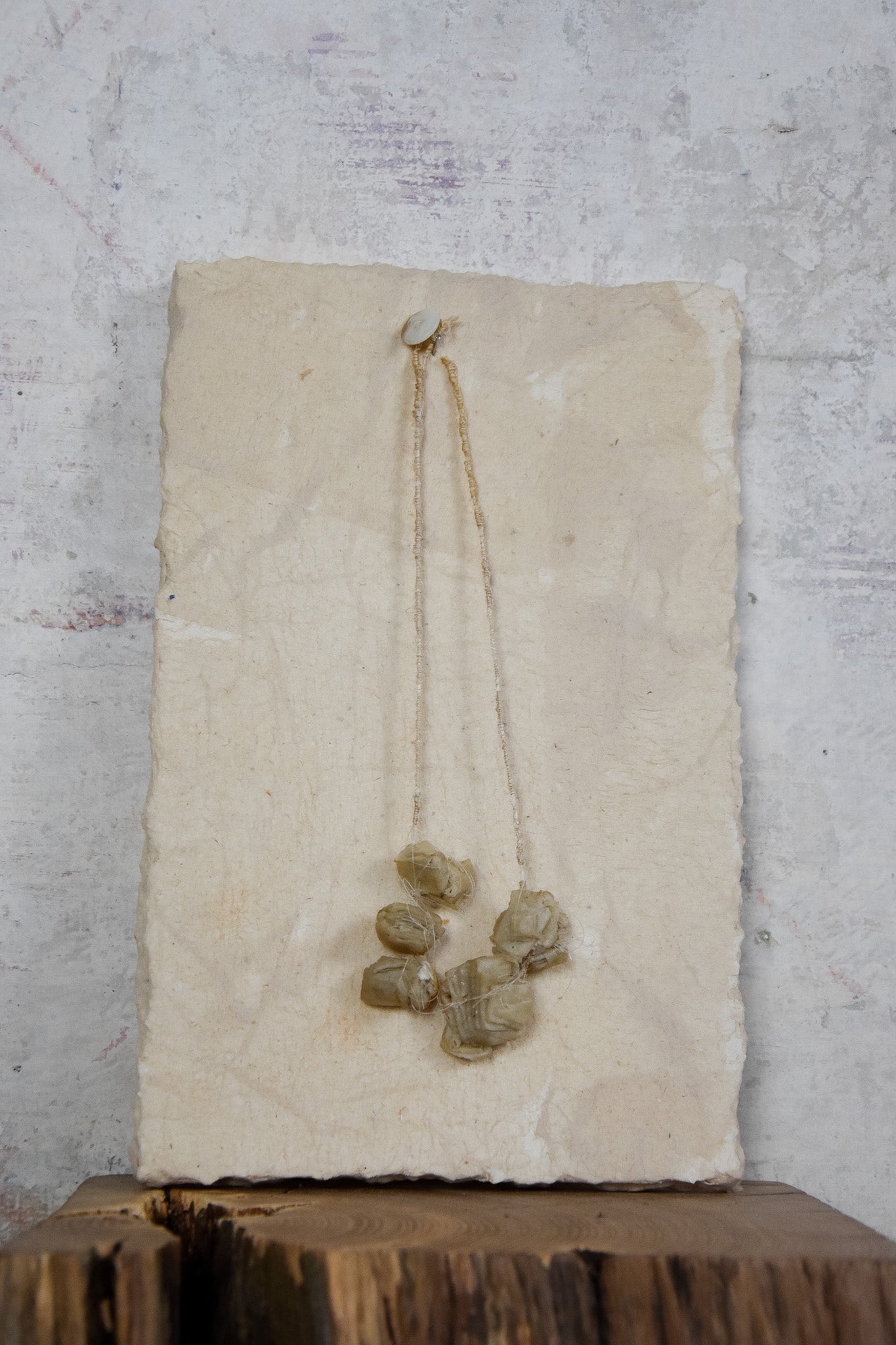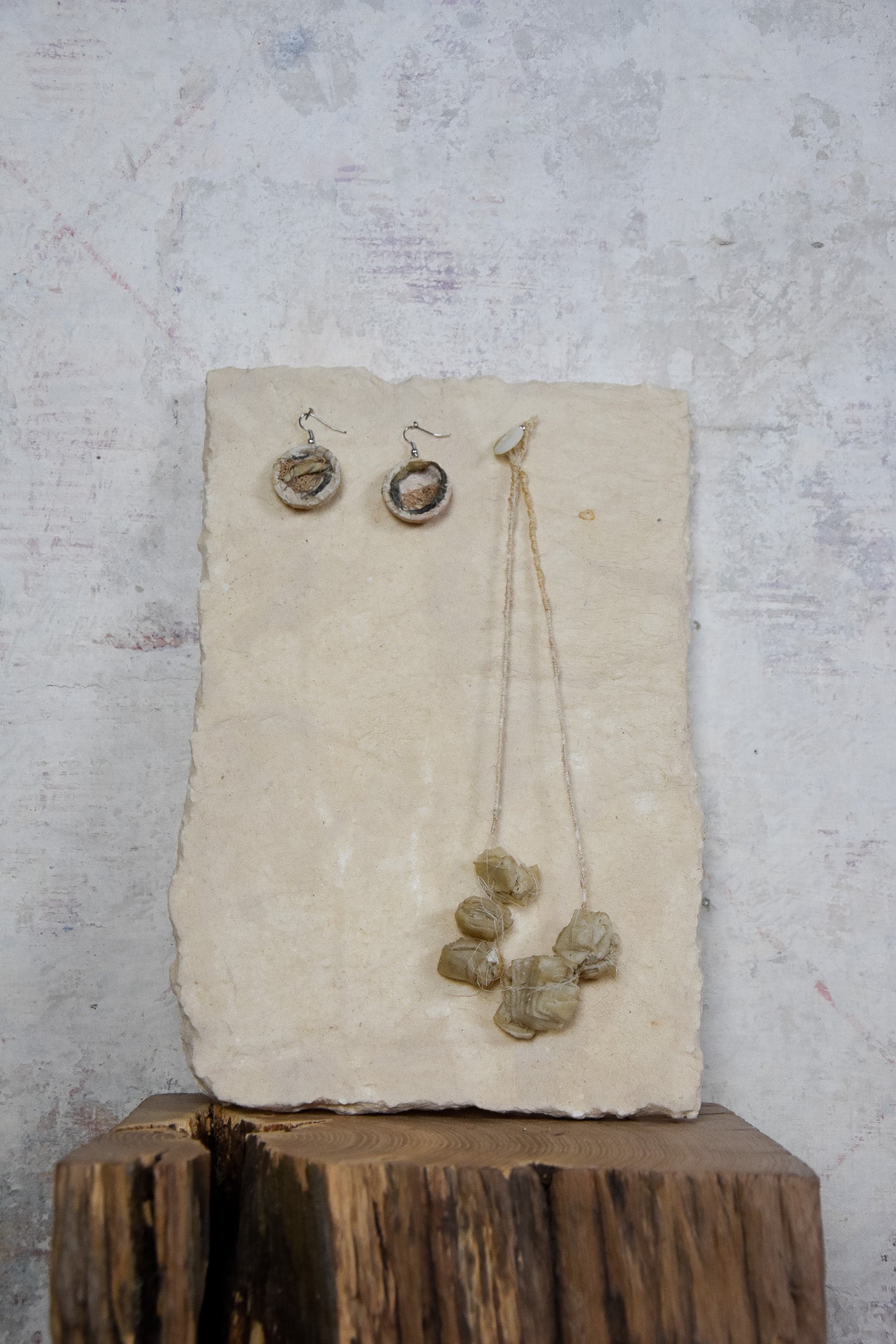 Stien maakt kunstwerken, sieraden, stationaire boeken en verlichting. Elk stuk is uniek.Ze omarmt de vergankelijkheid van de natuur in haar collectie, die vol zit met sporen, structuren en verwijzingen naar fragiliteit.