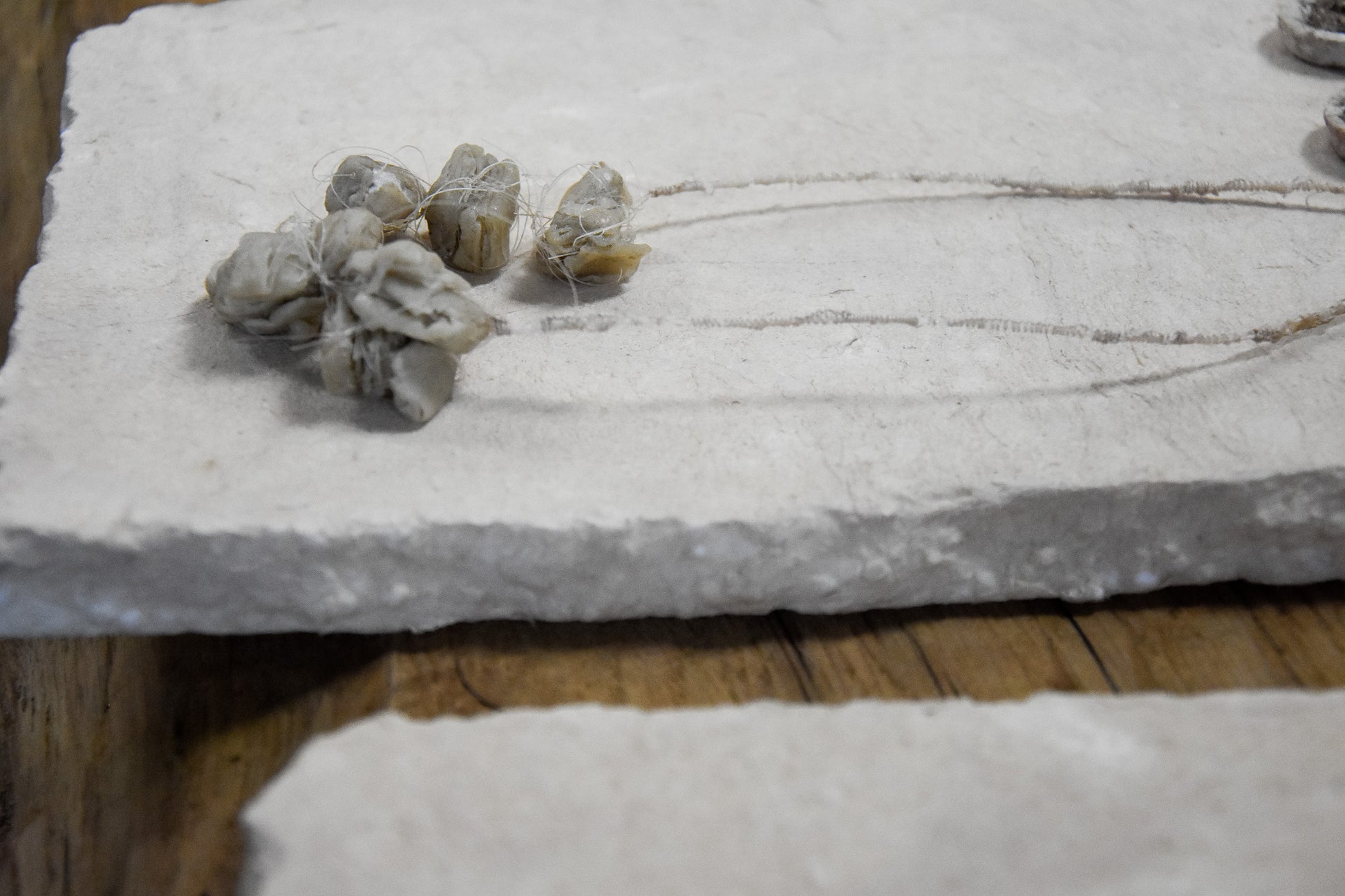 Stien maakt gebruik van verschillende materialen, zoals was, paardenhaar en textiel.