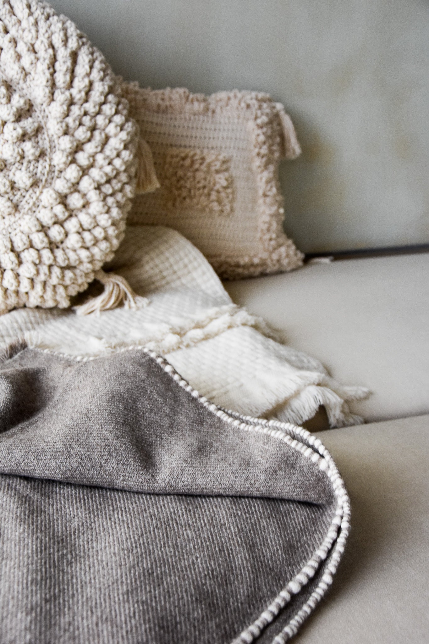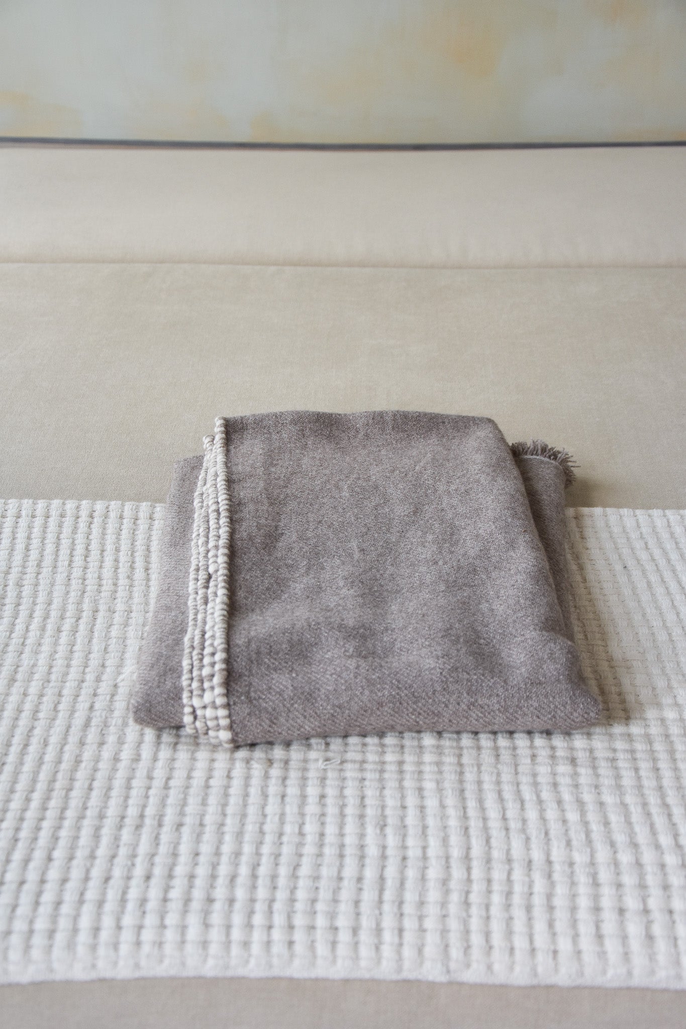 Dit deken, in Anu Twill, is voorzien van een overlock aan de zijkanten en heeft fransjes aan de randen. Het is samengesteld uit een combinatie van drie soorten wol van klasse A kwaliteit. Jakwol is uitzonderlijk luxueus en sterk, even zacht als kasjmier en biedt comfortabele warmte. Dit ruime en zware deken is afgewerkt met een speels witte overlock aan de zijkanten. Het heeft een strakke weving en een franje van 2 cm aan het uiteinde.