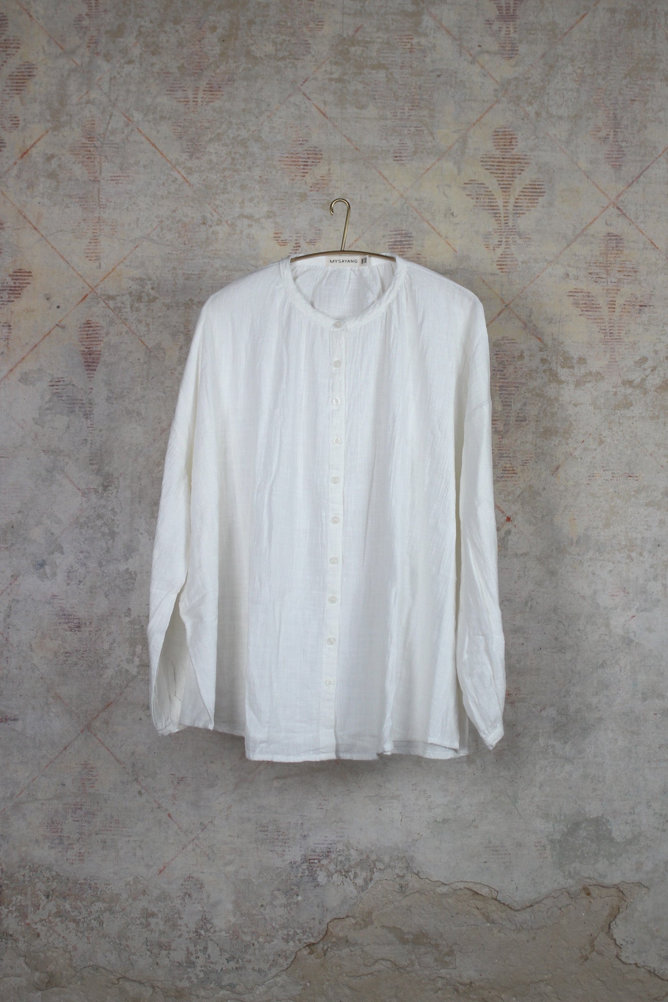 De naam ‘Mysayang’ betekent ‘mijn liefde’. Die liefde weerspiegelt zich in de levendigheid van de natuurlijke stoffen, de eenvoudige lijnen, het tijdloze scala aan hand geverfde kleuren en een natuurlijke stone wash afwerking. Door de hoge kwaliteit van de natuurlijke stoffen, zal de kleding met je "meegroeien". Het merk ondersteunt twintig lokale kleermakersfamilies op Bali. Mysayang streeft naar een duurzame manier, door handgeweven stoffen, gemaakt zonder enig gebruik van elektriciteit. Ze willen onze lichamen niet in maatclusters indelen, daarom werken ze met one size fits all. De meeste stukken zijn uniseks.